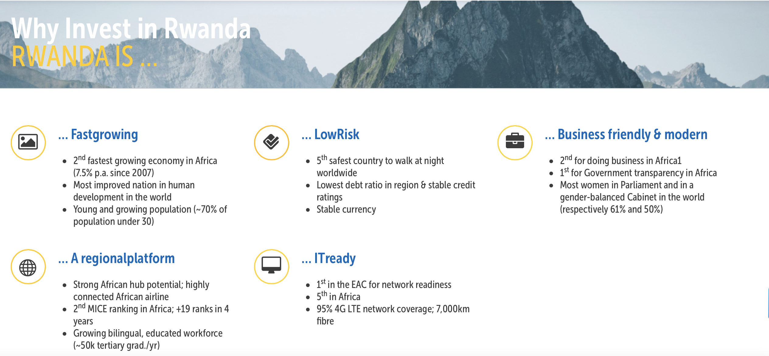 Rwanda is a country known for its breathtaking scenery, often referred to as the land of a thousand hills. Its capital Kigali has been ranked the second most popular destination in Africa for hosting international conferences and events by ICCA (International Congress and Convention Association).